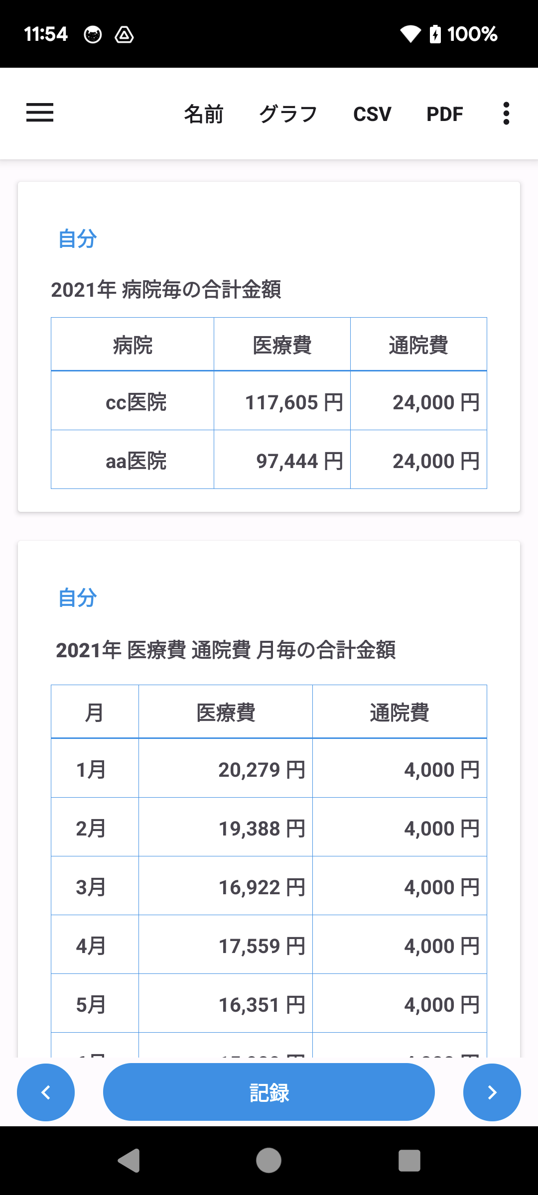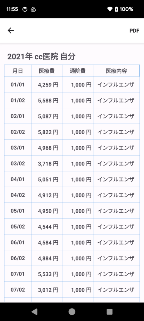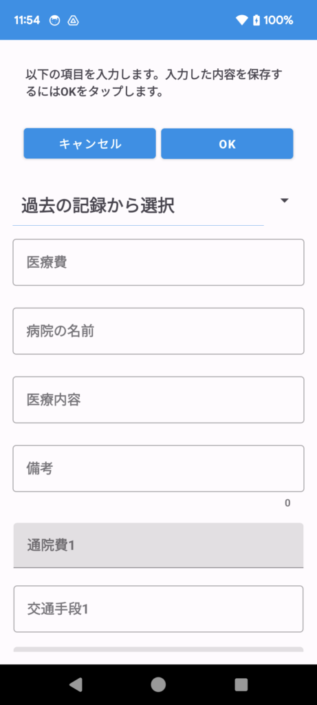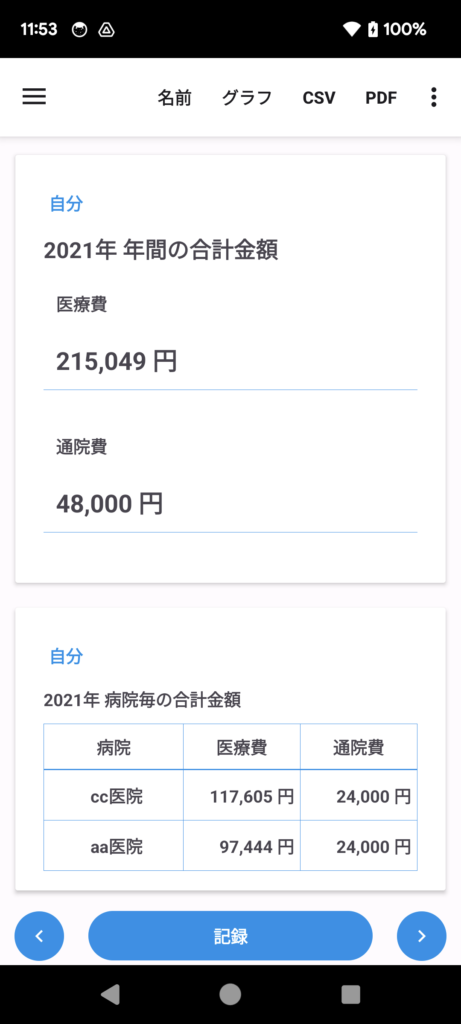 医療費を記録するためのアプリです。